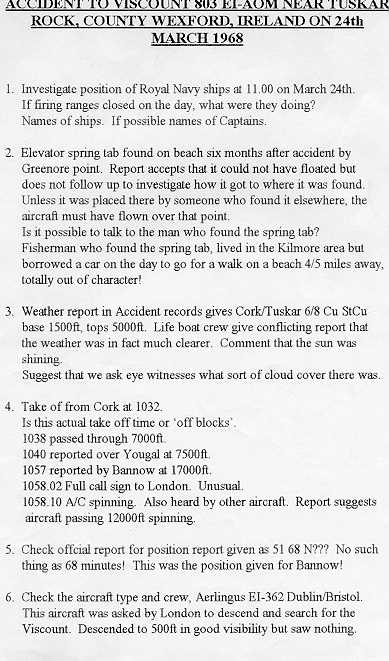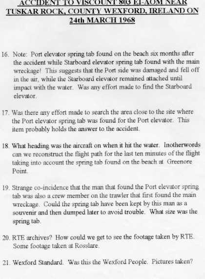 The mystery of the 'Lost Viscount', an Aer Lingus aircraft which crashed into the sea off the south-east coast of Ireland in 1968, with the loss of all on board. The reasons for the crash have never been fully explained, there is even some talk of 'foul play'. The man who has put a lot of work into this is Edward Hannon, 19, Ard Na Coille, Dunmore East, Co. Waterford, Ireland. Tel: (051) 383693.