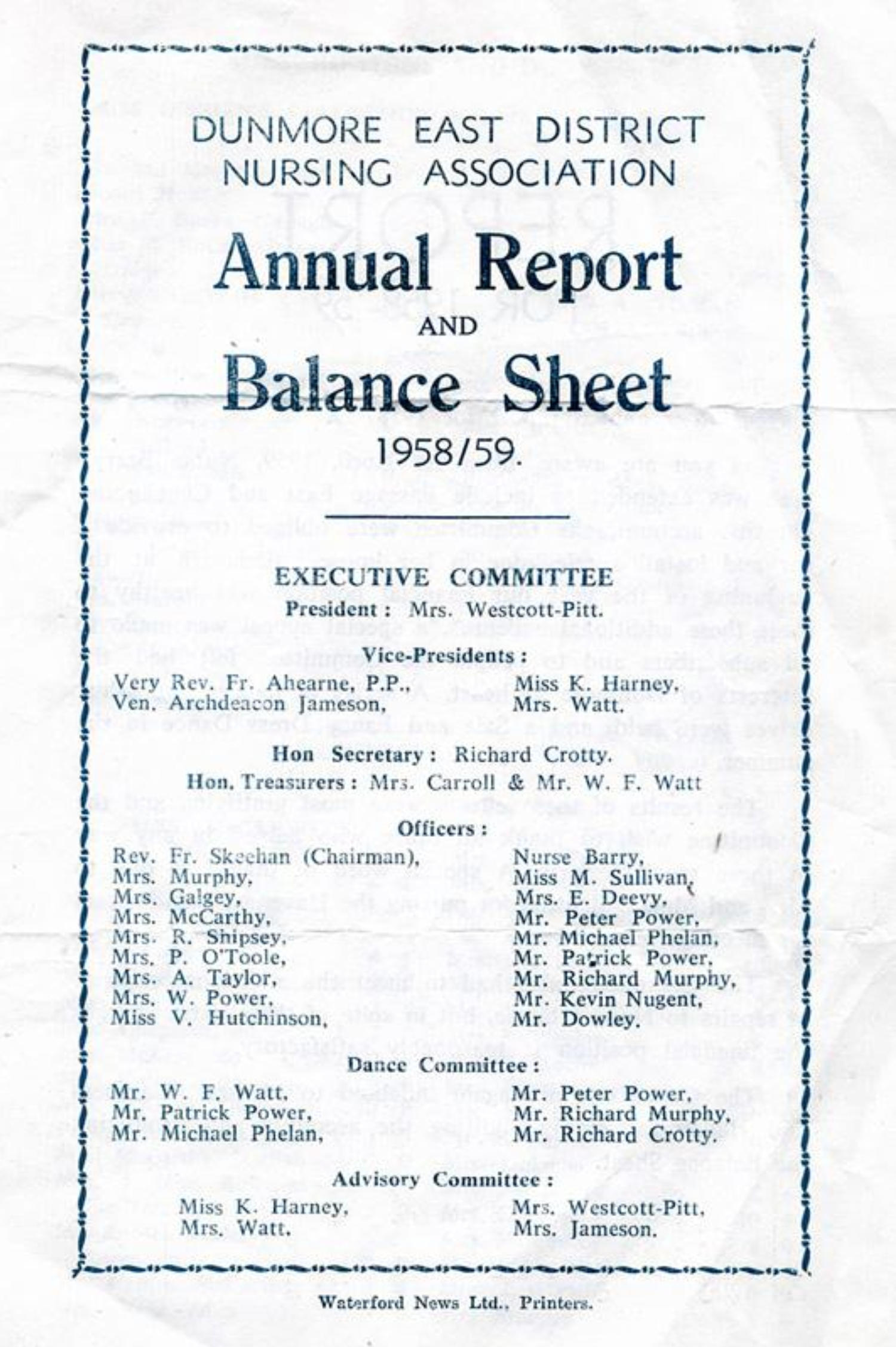 These are the Dunmore East District Nursing Association's annual accounts for 1958/59, from Nurse